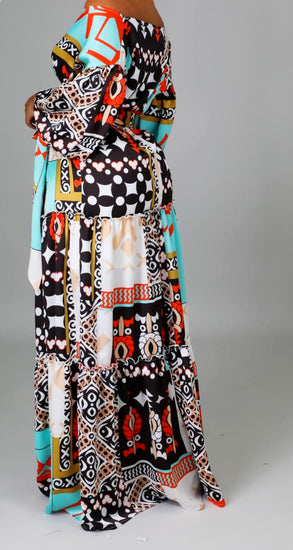 Aztec Maxi Front Cut Out Dress
