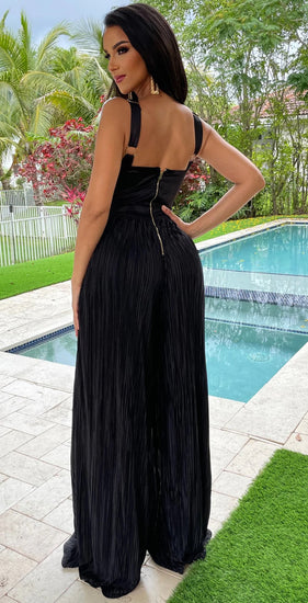 Elevate your wardrobe with this sophisticated black jumper, designed for the modern woman who values both style and practicality. The striking zipper back detail serves as a functional focal point, adding contemporary edge to a timeless silhouette. Pleated legs create graceful movement and visual interest, while the extended length accommodates taller frames with ease. Perfect for transitioning from office to evening, this piece combines expert tailoring with versatile appeal.