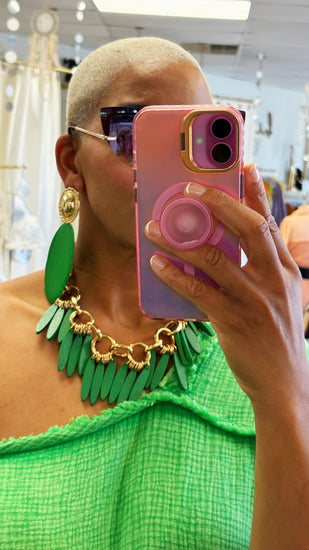 Elevate your ensemble with these exquisite gold accent earrings. The vibrant color palette creates a striking visual impact while the gold elements add a touch of sophistication. Meticulously crafted to balance boldness with elegance, these versatile accessories transition effortlessly from daytime casual to evening formal wear.