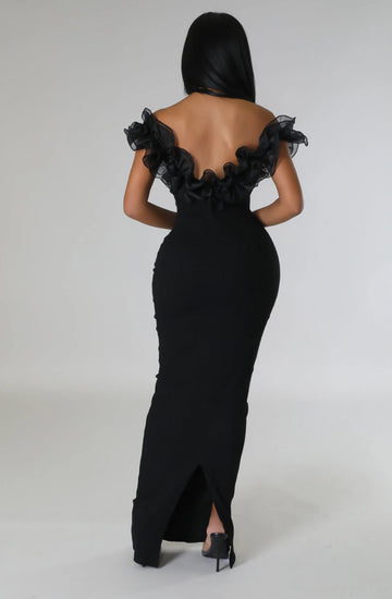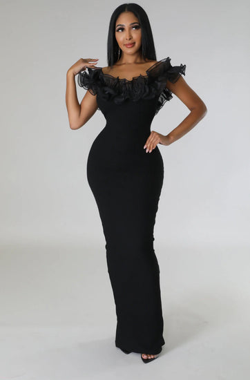 This sophisticated stretch dress features an elegant ruffle neckline that frames your face beautifully. The versatile black fabric offers comfortable flexibility while maintaining a sleek silhouette. Perfect for transitioning from office to evening events, the Gina design combines timeless style with modern comfort for a polished, figure-flattering look.